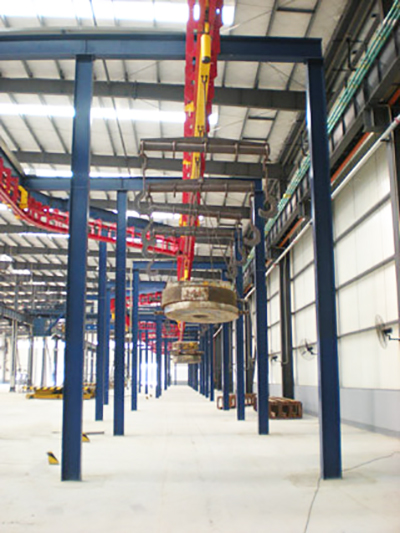 重型積放式懸掛輸送機是我公司定型優(yōu)質(zhì)產(chǎn)品。其系統(tǒng)主要由驅(qū)動裝置、張緊裝置、軌道系統(tǒng)、牽引鏈條、承載車組及載荷梁等組成。該輸送系統(tǒng)已在工程機械、冶金等行業(yè)得到成功應用,獲得用戶一致好評。